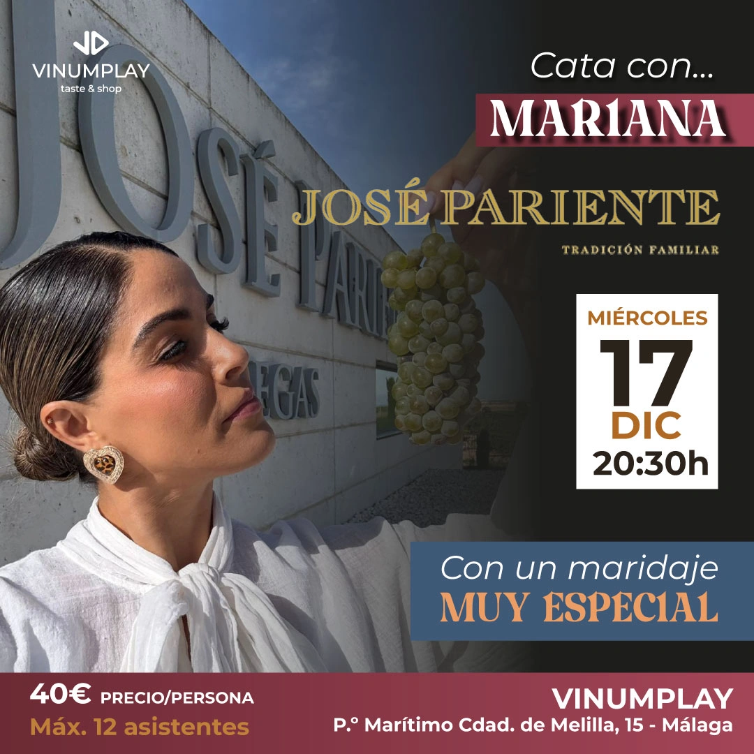 17 de diciembre 20:30 - 22:30 Cata con Mariana (José Pariente) VinumPlay Málaga Paseo Marítimo Ciudad de Melilla, 15, Málaga, Spain Adquirir Entradas 40,00€ 9 entradas restantes